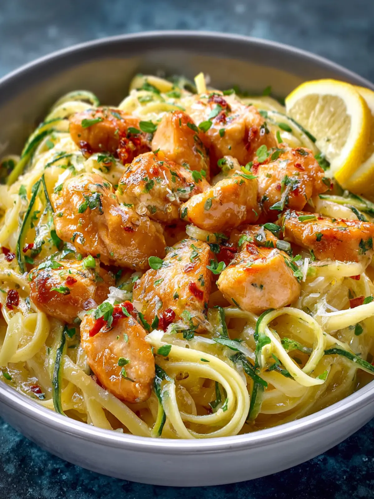 11. Transfer the zoodles to a serving dish. Garnish with chopped parsley and sprinkle with red chili flakes. Serve immediately and enjoy!