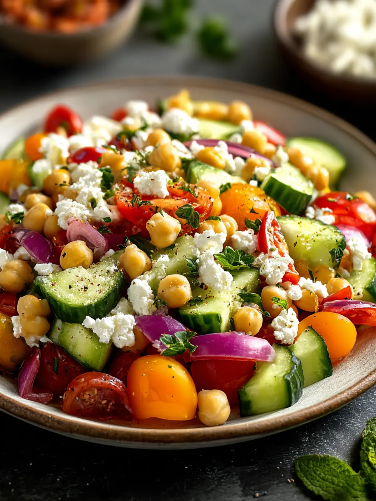 • Fresh Vegetables: Think crisp bell peppers, juicy cherry tomatoes, and refreshing cucumbers. Their vibrant colors not only make the salad visually appealing but also contribute to the overall freshness of the dish.