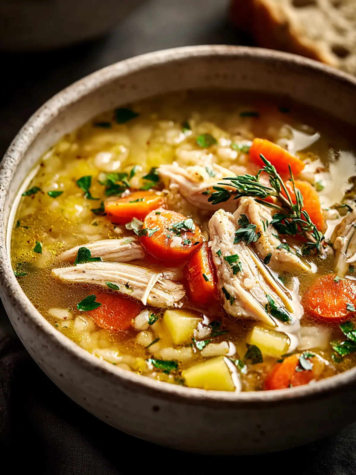 A comforting and hearty soup made with leftover turkey and fresh vegetables.
