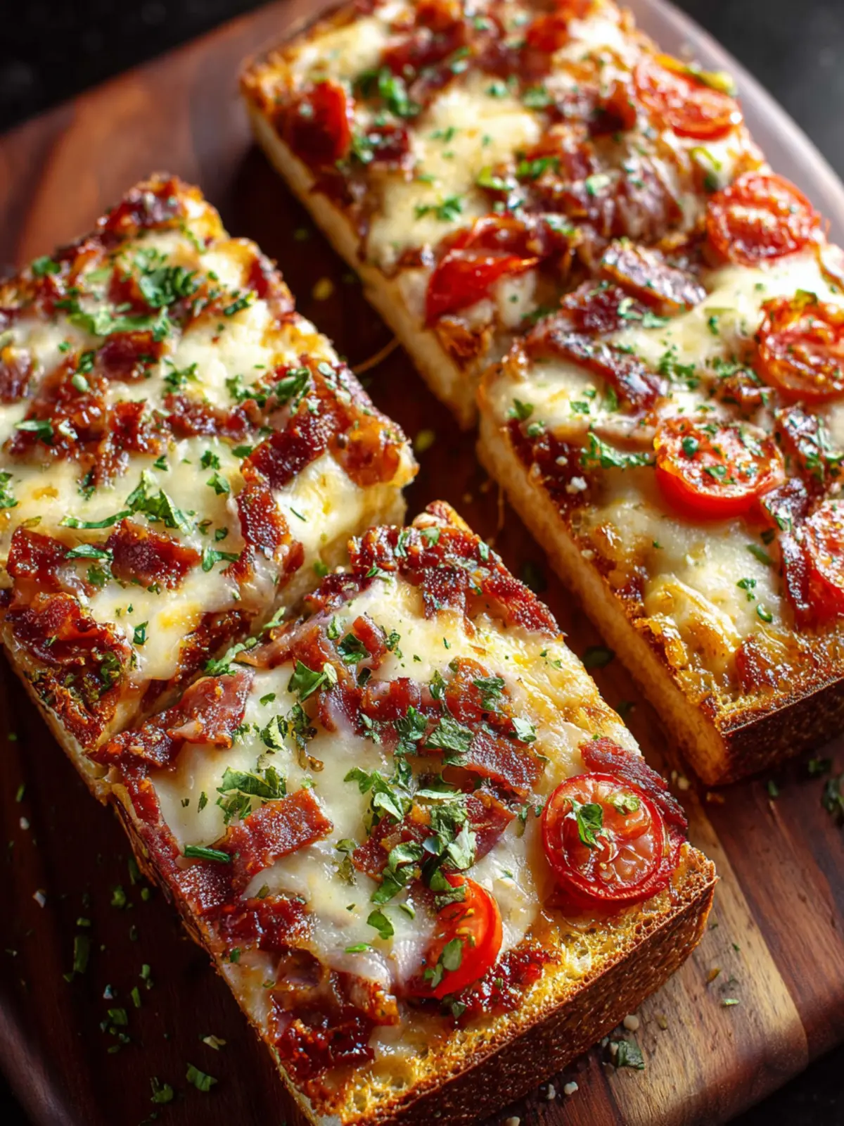 Crispy Base: The foundation is a robust French loaf that achieves that perfect crunch when baked, holding up under a mound of toppings without getting soggy. You can truly savor each bite.
