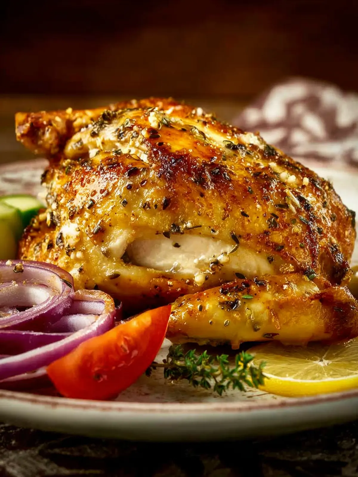 A delicious Greek-style roasted chicken that is marinated to perfection.