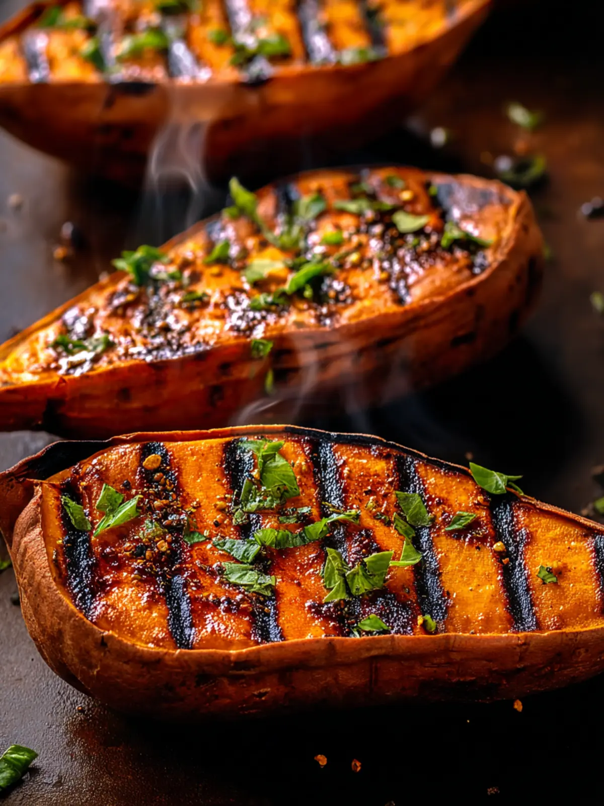 Finish with a sprinkle of toasted nuts, such as pecans or walnuts, once the potatoes are off the grill. Their crunch adds an exciting texture that complements the soft, grilled sweet potatoes perfectly.