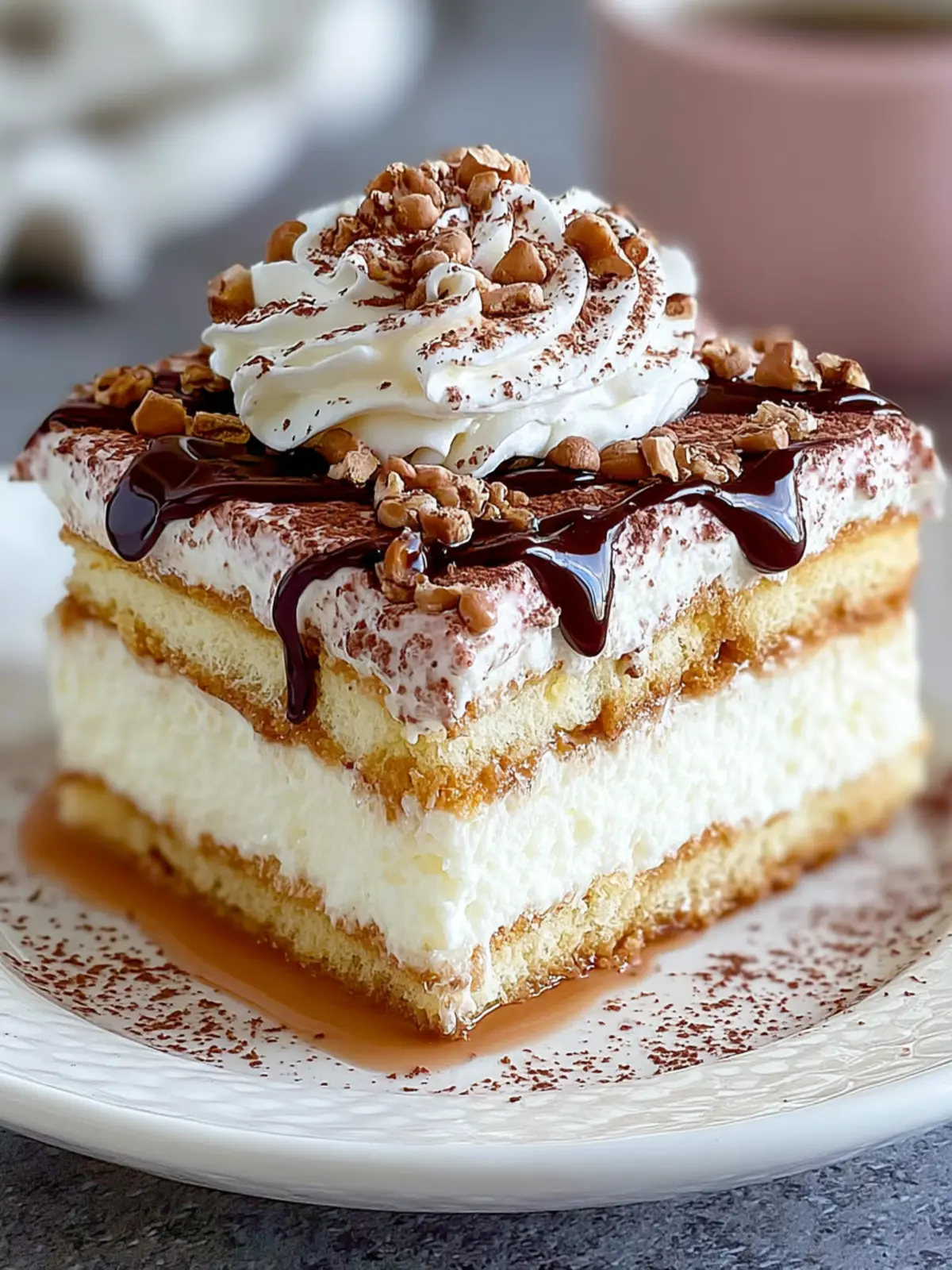 • Decadent Creaminess: The mascarpone cheese brings a silky texture that melts in your mouth. Blending it with whipped cream creates a lightness that contrasts beautifully with the coffee-soaked cake, making it utterly irresistible.