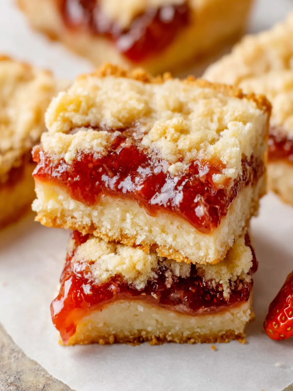 To keep your jam bars fresh, store them in an airtight container. If you have leftover bars, layer them between pieces of parchment paper to prevent sticking. They’re best enjoyed at room temperature, but you can also refrigerate them if you prefer a chilled treat.