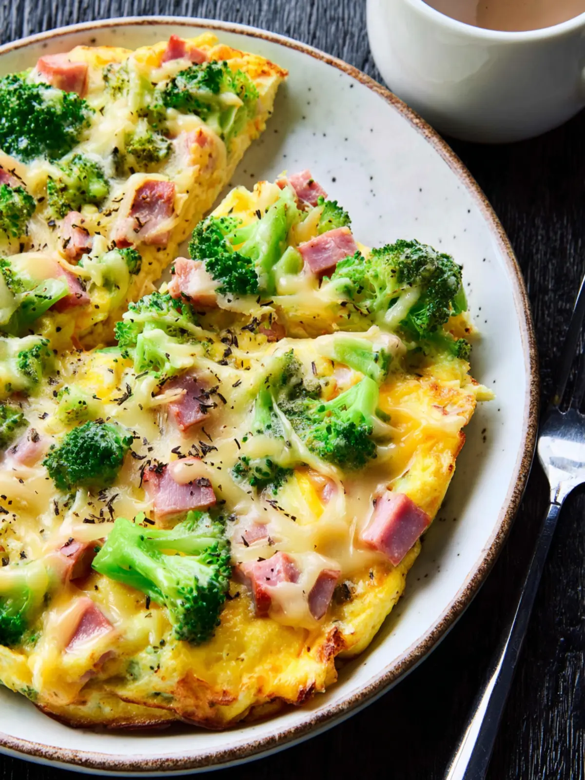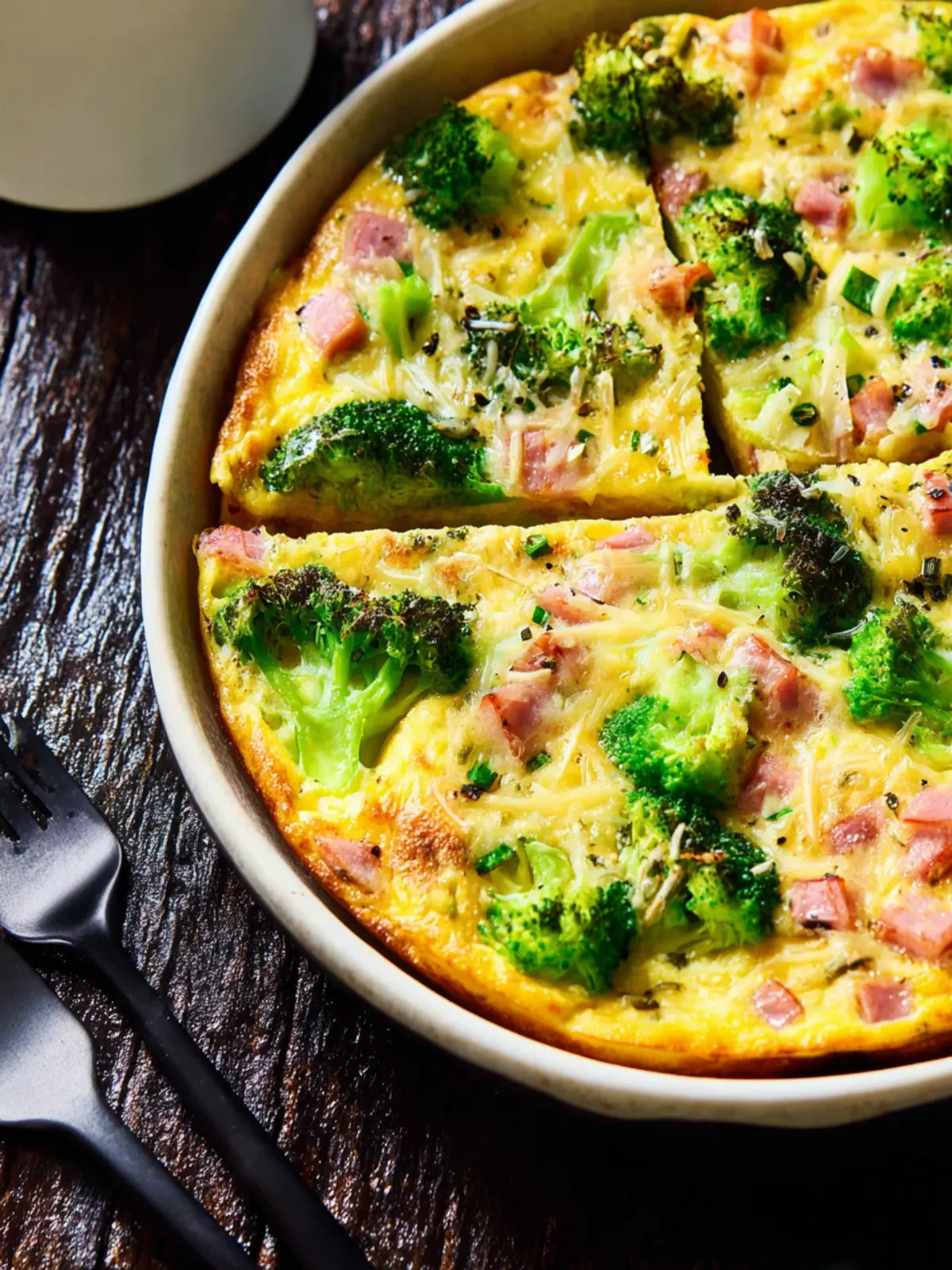 This delicious slow cooker breakfast casserole is packed with broccoli, ham, and Swiss cheese, making it a hearty morning meal.