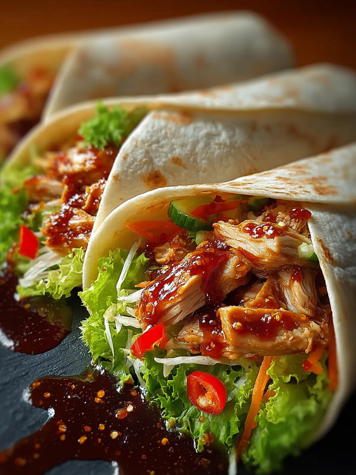 In wrapping up our delightful journey into the world of sweet chili chicken wraps, it’s clear that this recipe is a crowd-pleaser, perfect for busy weeknights or casual gatherings. With its balance of savory chicken, crisp veggies, and that addictive sweet chili sauce, this wrap encapsulates everything you crave in a quick meal. Plus, it’s incredibly adaptable—feel free to add or swap ingredients based on your preference. Getting creative is part of the joy! So why not give it a try? You might just find yourself enjoying these flavors in your kitchen every week!